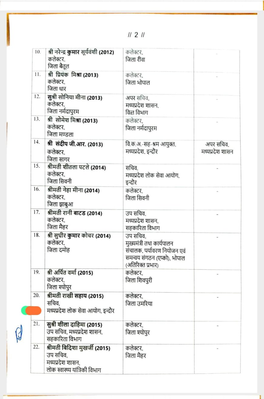 कलेक्टर धरणेन्द्र कुमार जैन का हुआ स्थानांतरण आयी नई कलेक्टर